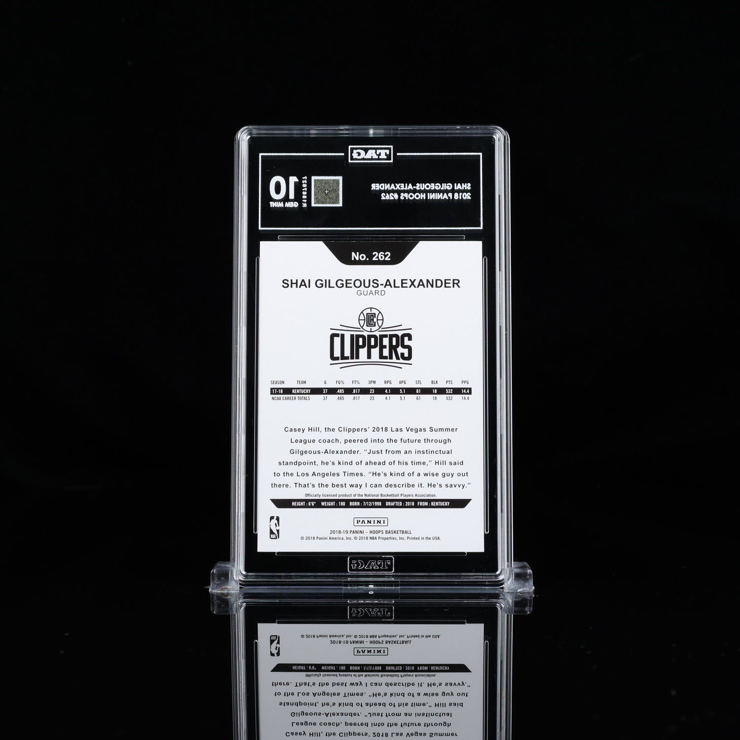 2018-19 Panini Hoops #262 Shai Gilgeous Alexander RC Rookie TAG 10 GEM MINT