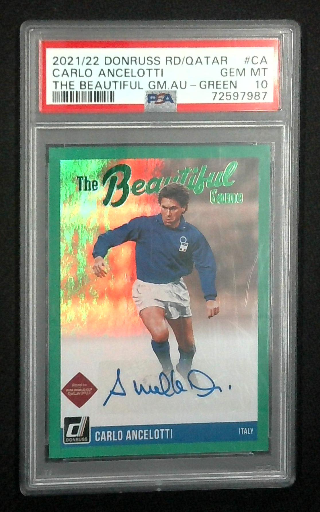 2021-22 Donruss Carlo Ancelotti Italy Beautiful Game Green Auto PSA 10