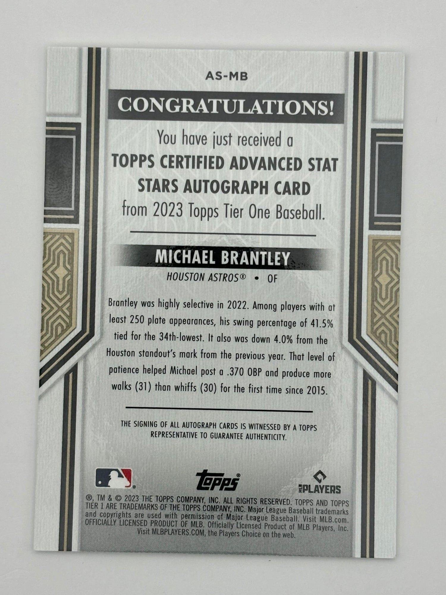 2023 Topps Tier One Michael Brantley Auto /50