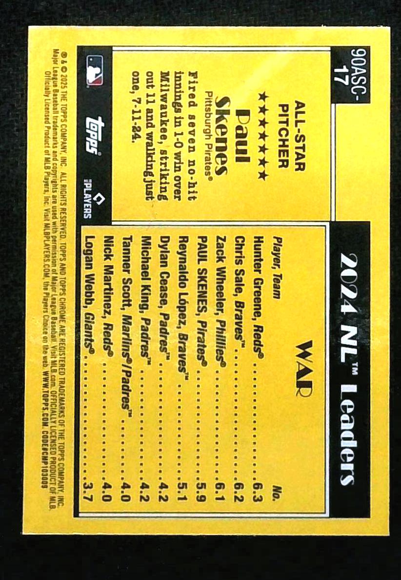 2025 Topps Chrome 35th 1990 All Star Blue Mojo #90ASC-17 Paul Skenes /150