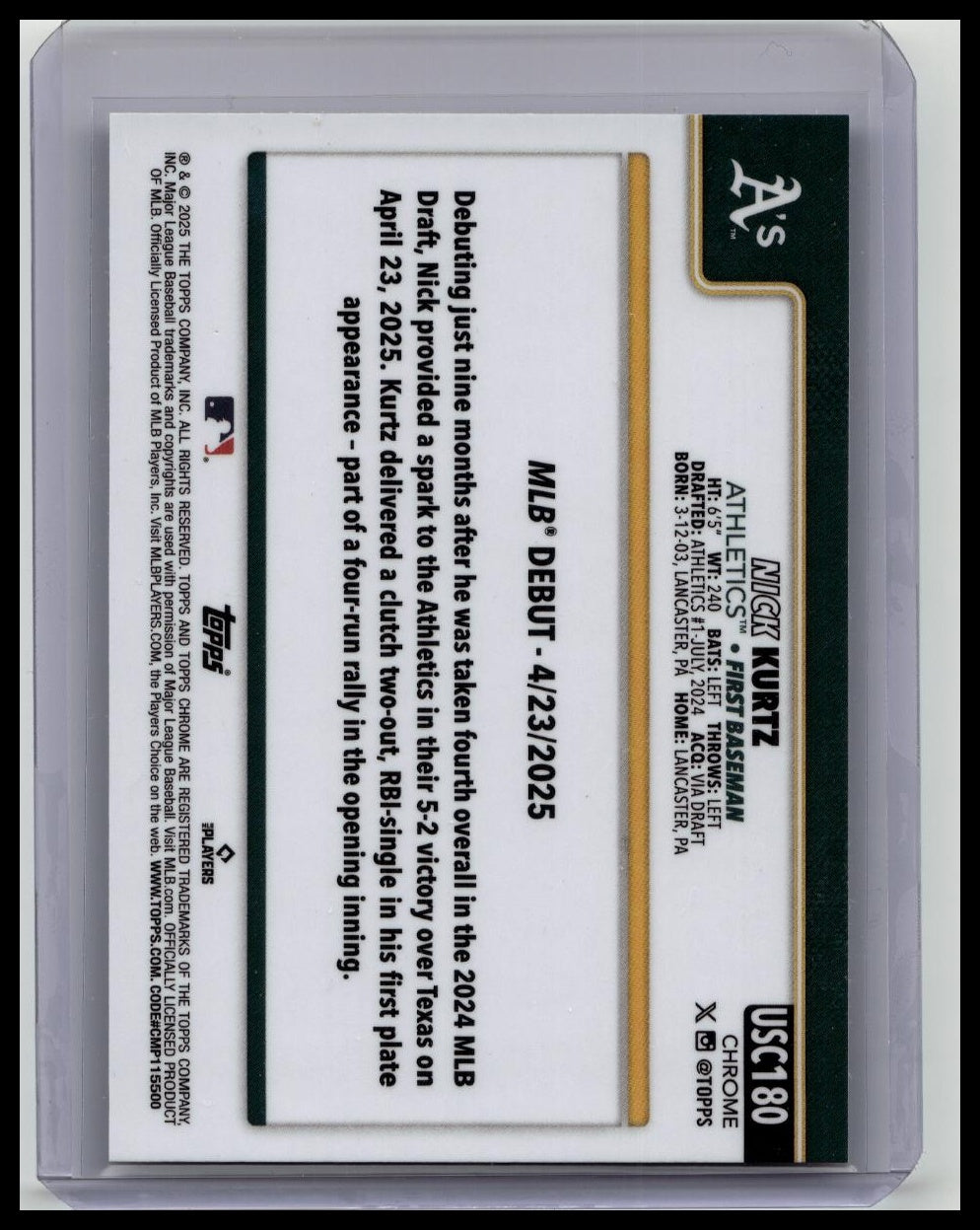 2025 Topps Chrome Update Nick Kurtz Rookie Prizm Refractor