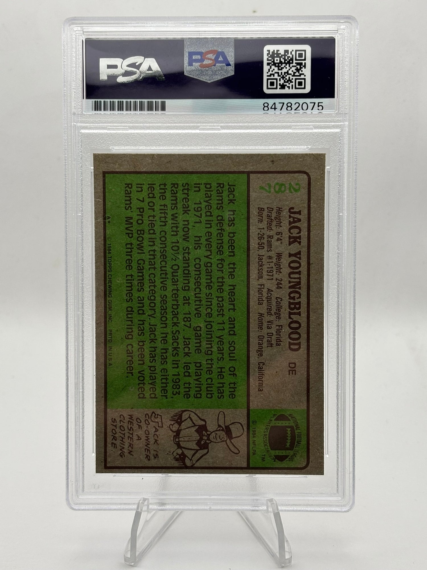 Jack Youngblood Signed 1984 Topps #287 Inscribed `HOF 01` (PSA)