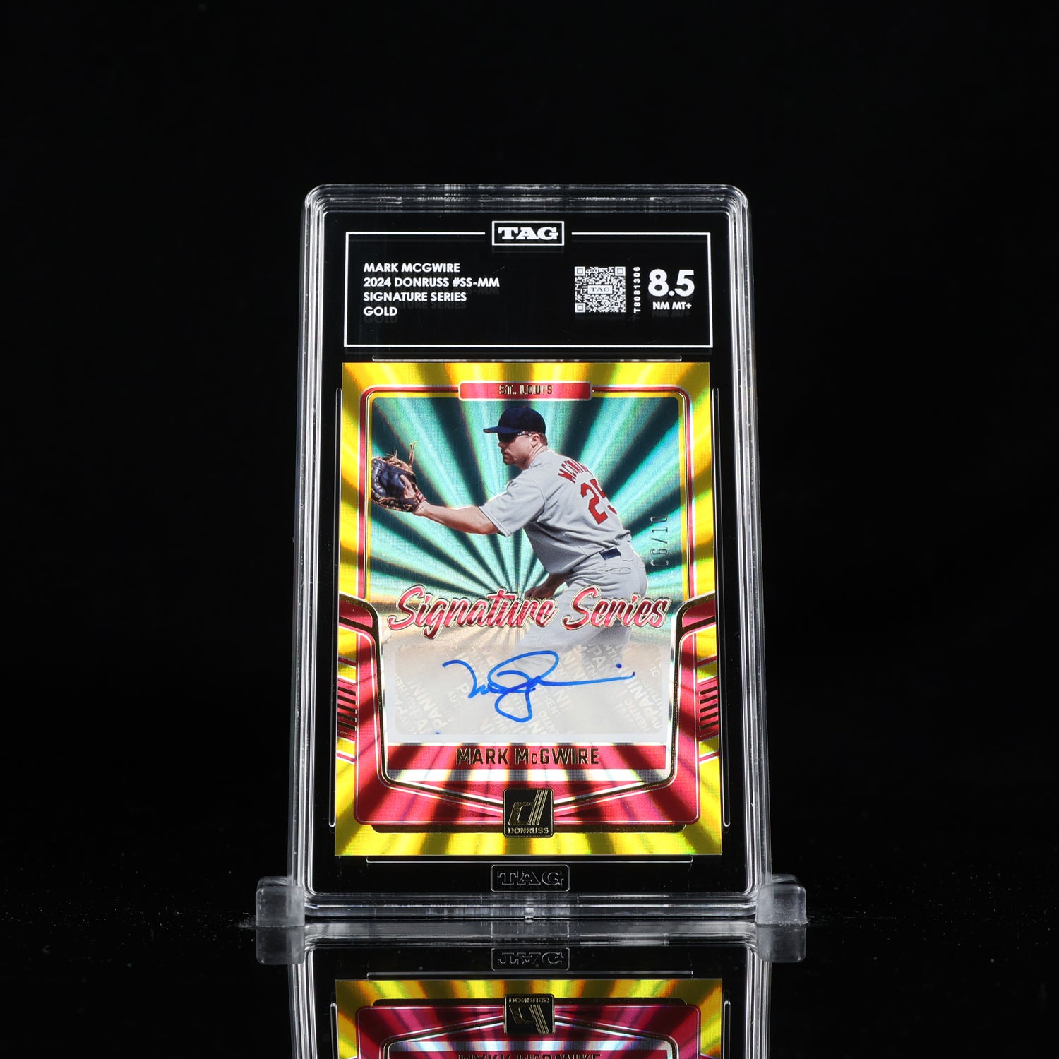 MARK MCGWIRE 2024 DONRUSS #SS-MM SIGNATURE SERIES GOLD /10 TAG 8.5