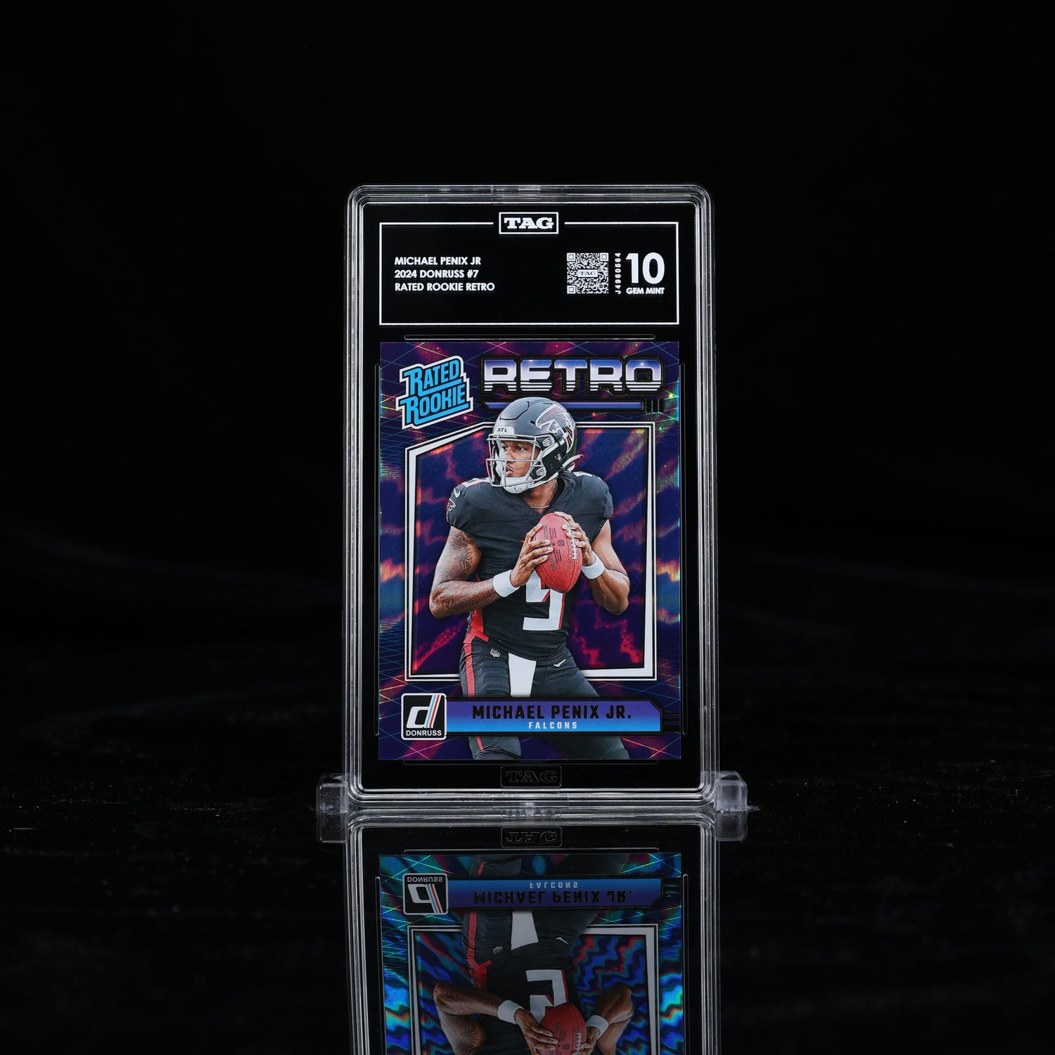 MICHAEL PENIX JR 2024 DONRUSS #7 RATED ROOKIE RETRO TAG 10